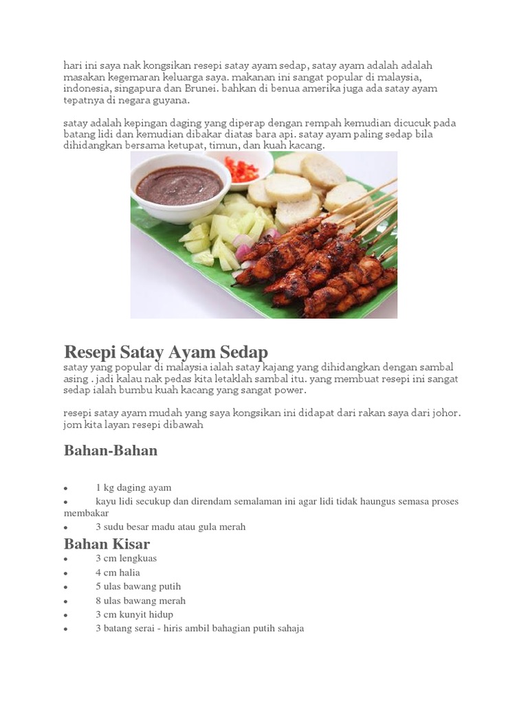 Resepi Sate Ayam Sedapppp Nye Satee