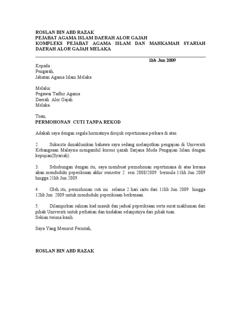 Surat Rasmi Untuk Memohon Cuti Tanpa Gaji The Silent Cries